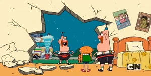 - The orange lining on the wall is missing when it gets to the hole Uncle Grandpa made.