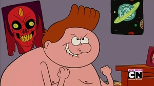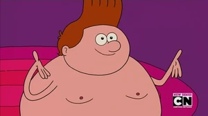 Belly Kid is a boy that appeared in the episode Belly Bros. In the beginning of the episode, he was not able to put his shirt on because his belly was too large. Uncle Grandpa made him a shirt but it accidentally transported him into the night wolf dimension. After him and Uncle Grandpa go on an adventure to defeat the Night Wolves and get home, Belly Kid comes to love his belly and decides he does not need a shirt. He is voiced by Zachary Gordon.