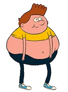 Belly Kid is a plump and chubby young boy with red hair fixed up in a forward swoop. He wears navy blue pants with light blue sneakers. Sometimes he is depicted wearing a yellow shirt t-shirt that barely covers his chest.