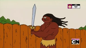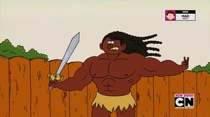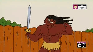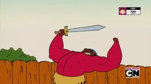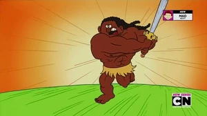 Eric holds the sword from The UG RV and becomes stronger and legendary, he wears yellow-green shorts and he also wears tooth necklace from Tree Dragon who was defeated by him.