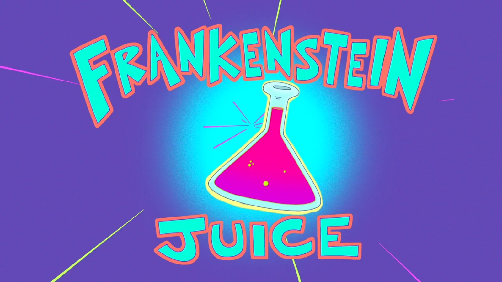 Dr. Frankenstein: It's Alive! It's Alive! Announcer: With Flavor! When you're feeling dead and empty in your head, You take a drink of Frankenstein Juice! Hit it! It'll open up your eyes and bring you back to life When you're swigging Frankenstein Juice! Stop! Feeling energized and soaring through the skies, When you're sipping Frankenstein Juice! If you're feeling torn apart and need a brand new start, Take a gulp of Frankenstein Juice! Cause those other drinks, They just aren't the same, Frankenstein Juice will send a boost to your brain. Frankenstein Juice! Frankenstein Juice! Frankenstein Juice! Frankenstein Juice! Frankenstein Juice! Frankenstein Juice! So come alive with Frankenstein Juice! Dr. Frankenstein: Only to be consumed by Frankenstein.