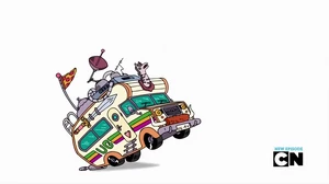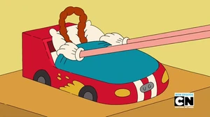 Uncle Grandpa's mustache is faster than him but after that Uncle Grandpa is chasing his small RV on his big mustache and his mustache is still hyper.