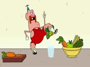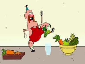- This is similar to the gag seen at the beginning of the SpongeBob SquarePants episode "Your Shoe's Untied" where SpongeBob is seen watching a realistic sea anemone dancing on TV, but quickly changes the channel to a football game when Gary enters the room.