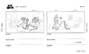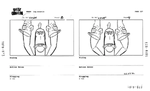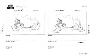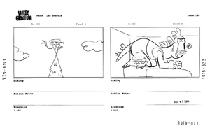 - In the storyboard for the montage scene, Pizza Steve has Mr. Gus help him spy on Uncle Grandpa in the bathroom. They obviously cut this part out of the final product.
