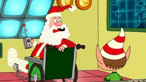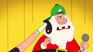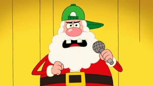 Santa Claus is a famous figure for the Christmas holiday who flies on a sleigh lead by magical reindeer and delivers presents made by his elves to all the good little girls and boys of the world, he is also Uncle Grandpa's brother as seen in the episode Christmas Special. He is voiced by Bob Joles.