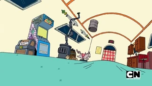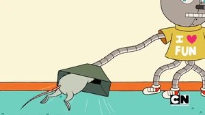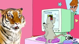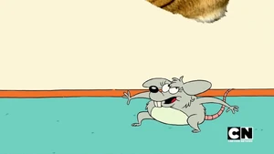 Tiger is shocked that the computer broke down so she hits the computer with her paw, trying to turn it back on. She notices a wire beneath the desk is torn up and a mouse is the one for the cause of the broken computer. As Tiger roars the mouse gets scared and the mouse runs all around Tiger's room until she walks out the door, Tiger tries to chase the mouse down all around the RV and the Mouse hides as a scoop of ice cream in Pizza Steve's ice cream cone. Pizza Steve notices the mouse in his ice cream cone and he throws it at Mr. Gus and Mr. Gus tries to tell them that it's just a harmless little mouse, Pizza Steve then asks Mr. Gus if he wants some moose for his mouse. The mouse then runs to the vacuum in Tiny Miracle and the mouse goes inside of Tiny Miracle and his propeller starts to turn, Tiger opens up Tiny Miracle's head to find the mouse on a running wheel and the mouse closes Tiny Miracle's head, so Tiger shakes Tiny until the mouse falls out.