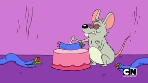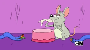 Tiger suggests to share him but Mouse doesn't want to share him and she'd rather just go with out Tiger, Mouse questions why should she share him with her, Tiger said because they're friends, Mouse said that she's been a friend of English Muffins longer than she even known her, Tiny Miracle said "ooh that's cold" and Uncle Grandpa shushes him. Mouse claims that this "friendship" is over and why should she waste time with these phony girls always trying to take what's hers. Uncle Grandpa tells Tiger to not let her talk to her like that, then Tiger tries to stop Mouse, Mouse bites on Tiger's paw, Mouse climbs on top of Tiger and she pulls one of her whiskers, Tiger grabs Mouse and she throws her at a wall, Mouse chews a mouse hole in the wall and they both continue to fight.