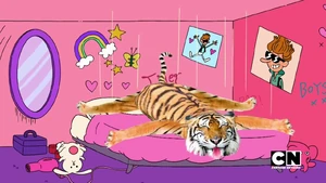 The episode begins in Tigers Bedroom and she's watching a video about a teenage pop heart throb by the name of English Muffinz (Tiger has a crush on English Muffinz like if she's like a teenage girl) and English Muffinz began to sing on the video.