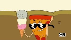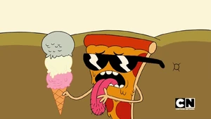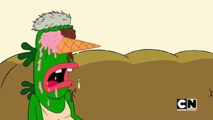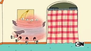 Pizza Steve gets his cheese taken off in the cross fight, Tiger can't find Mouse but Mouse chews a hole through the floor under Tiger causing her to fall, Mouse then continues to try to go on that date with English Muffinz, but Tiger Flies out of the floor, as Mouse is in the air heading towards Tiger she gets caught in Tiger's mouth and Tiger tosses her in the air and farts Mouse across the city in a rainbow explosion. An old lady asks did something just explode and her husband said it was probably just a mouse or something. Uncle Grandpa is sorry for what happened with Mouse but she was just a bad influence on Tiger, but on the bright side Tiger gets to go on the date with English Muffinz, as Uncle Grandpa is undoing the cuffs on English Muffinz, English Muffinz makes a run for it, and Uncle Grandpa says that we have a runner, and Tiger goes after English Muffins.