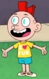 Tiny Michael is a gray Human with a round head, two teal eyes and a cylinder shaped nose. His mouth is a light that blinks when he talks. He has a yellow shirt with "I ♥ Fun" written on it and a red cap. Tiny Michael also has two human arms and 3 legs and 3 red sneakers.