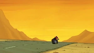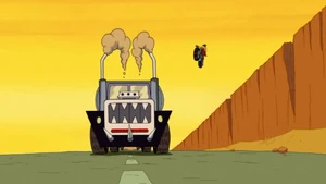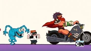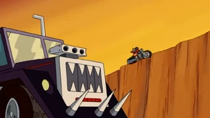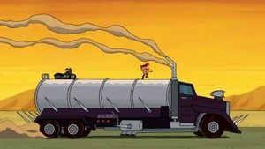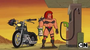 Evil Wizard sabotaged Xarna's motorcycle when he slingshot a pebble into the gas tank and causing her to lose all her gas and the race. He then proceeded to tease her off by wishing her luck to find a gas station.