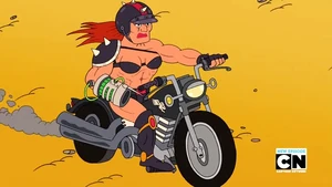 Uncle Grandpa helped Xarna when he got the gas for her motorcycle and freed her from being forced to marry the blue alien. He gave Xarna a tricycle when she was unable to get gas for her motorcycle and she thanked him for it.